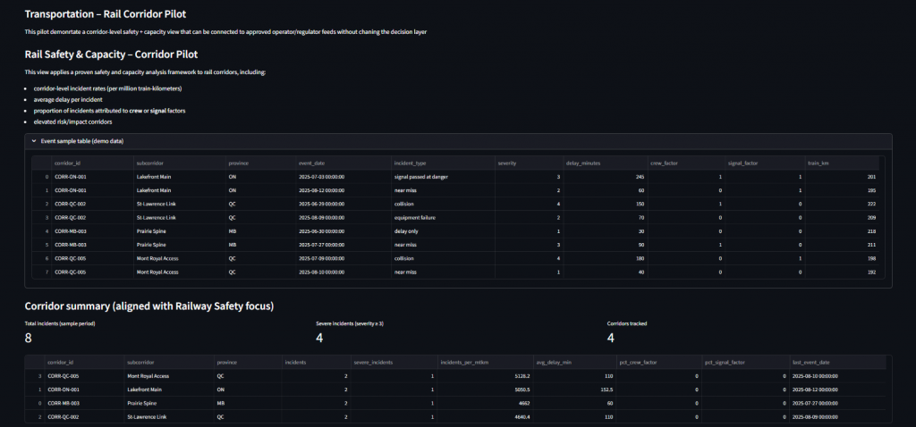 This platform ingests operational, environmental, and corridor-level inputs and maintains a continuous internal model of rail safety conditions. It does not replace existing systems.